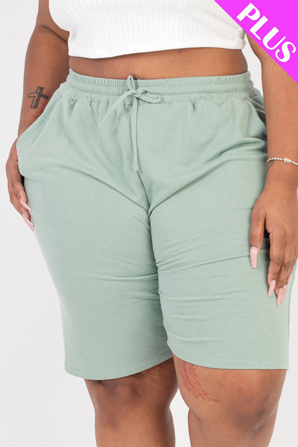 Plus size Bermuda shorts, plus size lounge shorts, plus size drawstring shorts, French terry shorts, plus size knee-length shorts, athleisure, comfy shorts, plus size casual shorts, plus size activewear