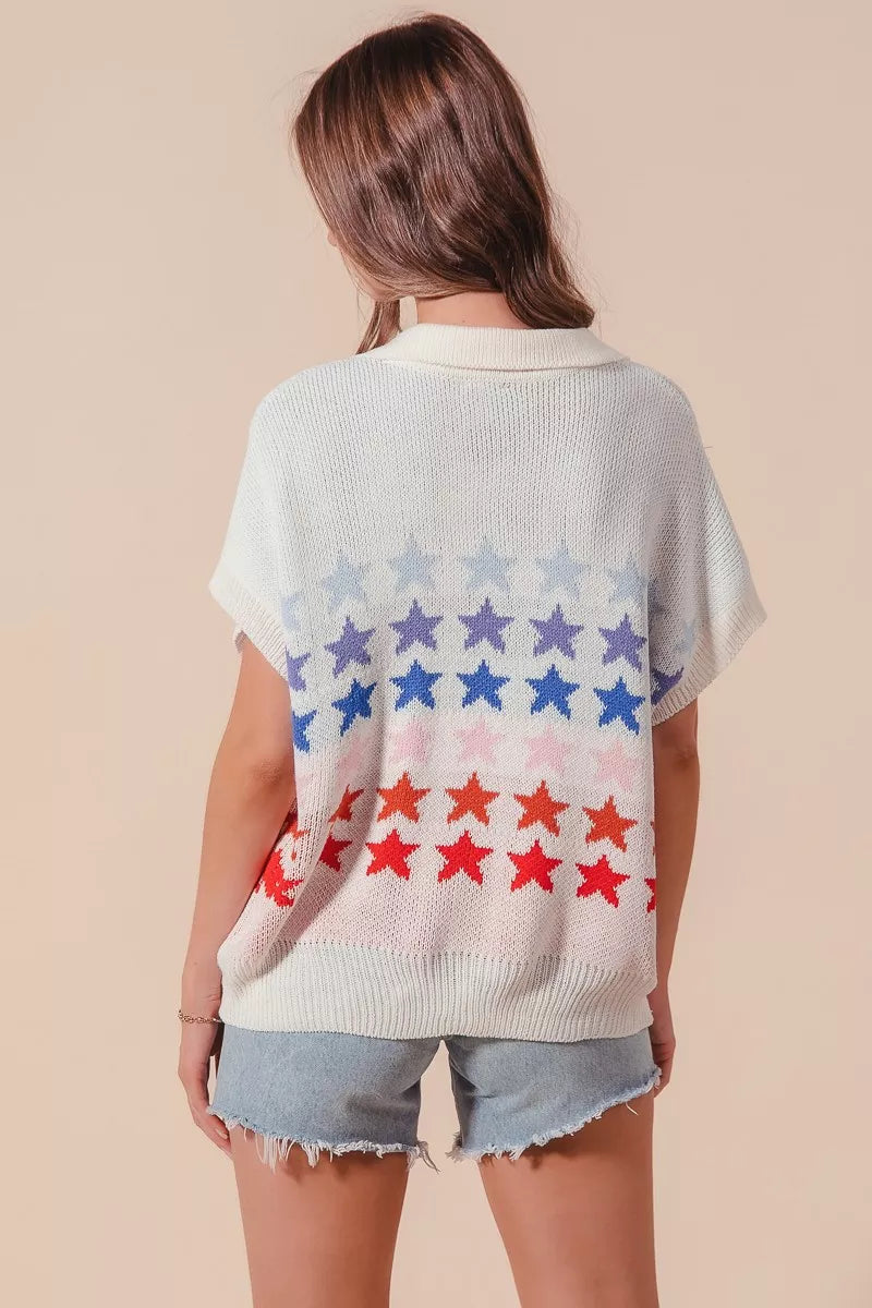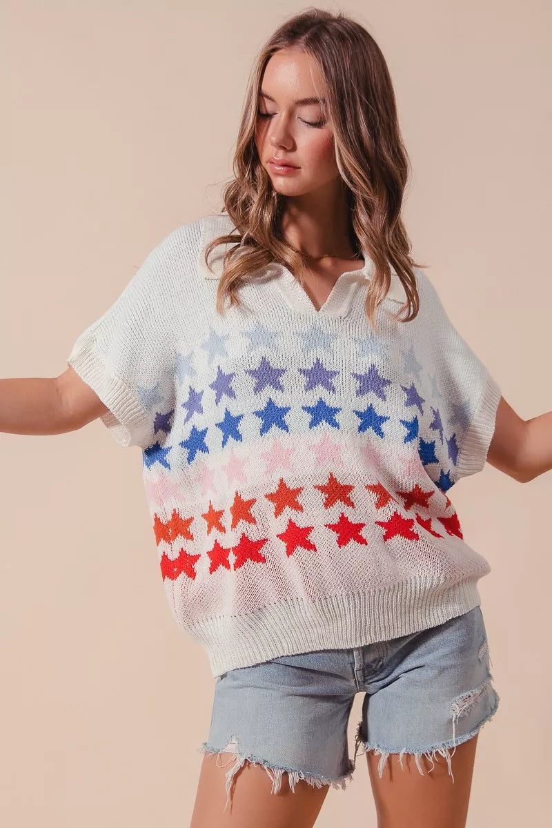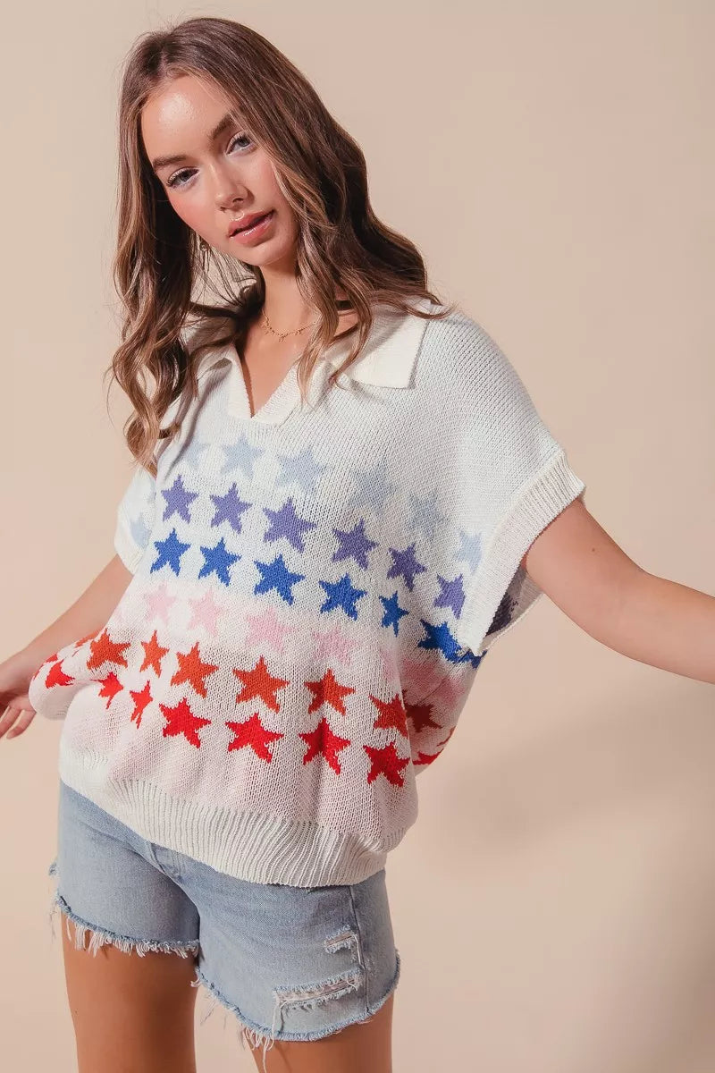 The Fourth of July Stars Loose Fit Knit Top is a patriotic and stylish choice for celebrating the holiday in style. The star print adds a touch of Americana flair to the top, perfect for Independence Day festivities. With a loose fit, this knit top offers a comfortable and relaxed silhouette that is easy to wear all day long. Whether paired with denim shorts for a casual look or dressed up with white pants for a more polished ensemble, this top is versatile and festive. Elevate your Fourth of July outfit with this trendy and spirited knit top that captures the essence of celebration.