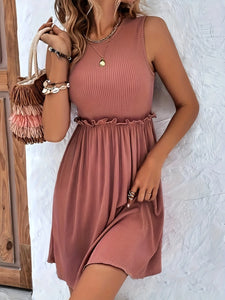 Double Take Smocked Sweetheart Neck Flounce Sleeve Mini Dress